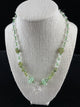 Dodecahedron Quartz Crystal, Apatite Stones, Heishi Pearls, Swarovski Crystal, Seeds, Lamp Glass, Sterling Stardust Beads, Sterling Clasp.