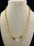 Brazilian Quartz Crystal Merkabah, Vintage Japanese Iridescent Rice Pearls, Swarovski Crystal, Hematite Stones, Sterling Beads, Sterling Clasp