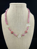 Brazilian Quartz Crystal Merkabah, Heishi Pearls, Rhodonite Rounds, Czech glass cups, Swarovski Crystal, Sterling Beads, Sterling Clasp