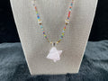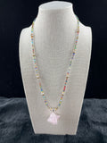 Rose Quartz Merkabah, Sparkling Seed beads, Czech glass caps, Rose Quartz Rondelles, Swarovski Crystal, Sterling Stardust Beads, Sterling Clasp. CMA Length 21”