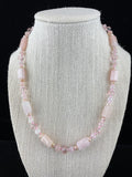 Morganite tubes and rounds, Swarovski Crystal, Sterling Stardust Beads, Sterling Clasp.