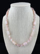 Morganite large ovals, Rose Quartz rondelles, Seed Beads, Swarovski Crystal, Sterling Stardust Beads, Sterling Clasp.