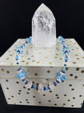 Lapis Lazuli rondelles, Double Terminated Quartz, Lamp GlassEye Beads, Hematite Beads, Quartz Rondelles, Swarovski Crystal, Seed Beads, Sterling Stardust Beads, Sterling Clasp.