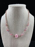 Druzy Agate focal stone, Pearls, Rhodochrosite beads A, Seed Beads, Czech flower glass beads, Czech glass round disk beads, Swarovski Crystal, Sterling Stardust Beads, Sterling Clasp.