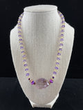Amethyst & Citrine faceted stones, Ametrine Focal Center stone, Sugalite stones, Heishi gold pearls, Swarovski Crystal, Seed Beads, Sterling Stardust Beads, Sterling Clasp. Matching