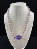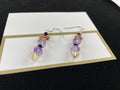 Amethyst & Citrine faceted stones, Ametrine Focal Center stone, Swarovski Crystal, Sterling Stardust Beads, Sterling Clasp. Matching Earrings with sterling wires. (1 ¼”)