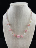 Druzy Focal Stone, Rhodochrosite Slabs, Pearls, Swarovski Crystal, Seed Beads, Sterling Stardust Beads, Sterling Clasp.